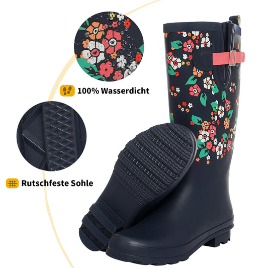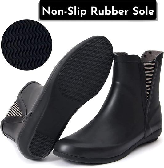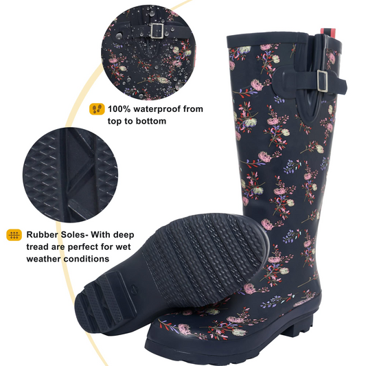 Sanfeng Black-Flower Chelsea Rainboots